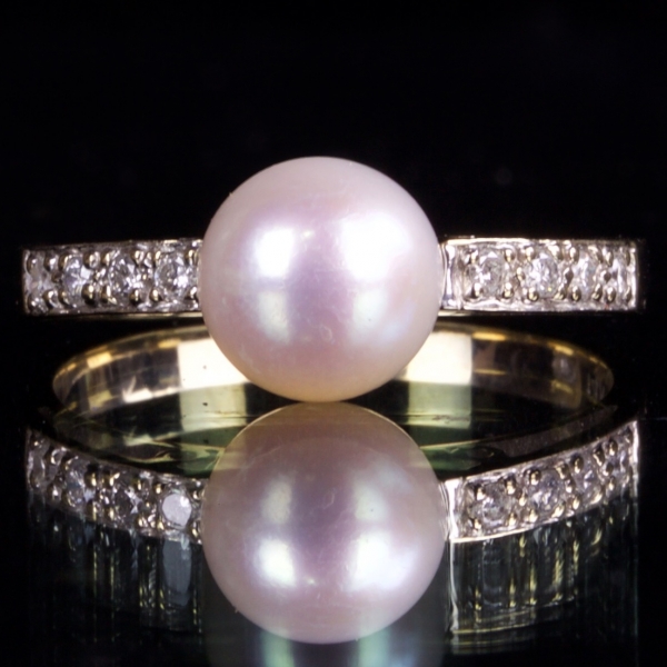 14K GOLD RING WITH DIAMOND AND PEARL