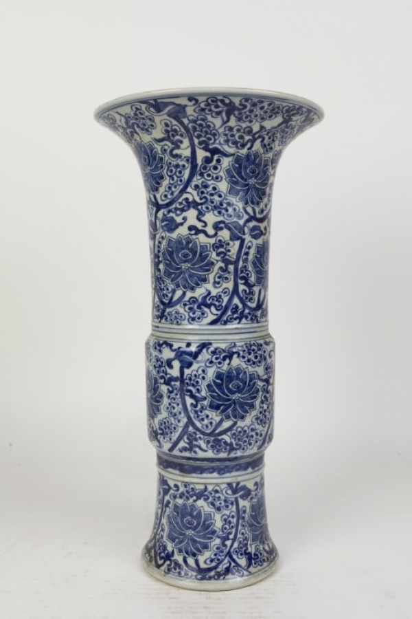 19TH CENTURY CHINESE BLUE AND WHITE GU VASE