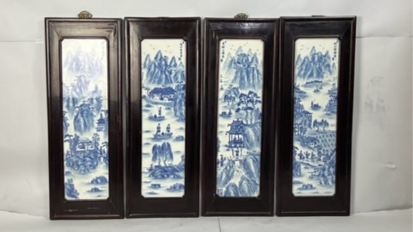 8023: SET OF FOUR CHINESE BLUE & WHITE HANGING PANELS