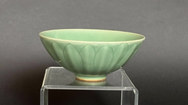 A BEAUTIFUL CELADON LOTUS LEAF BOWL