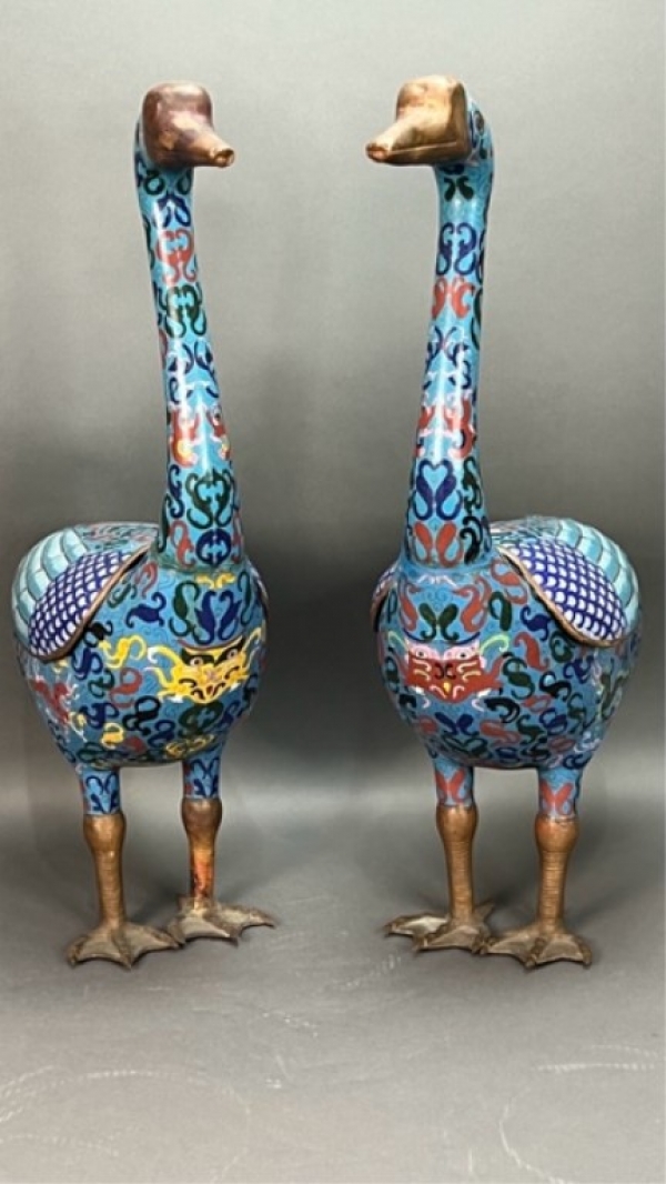 A BEAUTIFUL PAIR OF CHINESE CLOISONNE GEESE