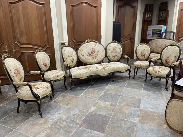 A FIVE-PIECE CANAPE & FAUTEUILS, AUBUSSON TAPESTRY