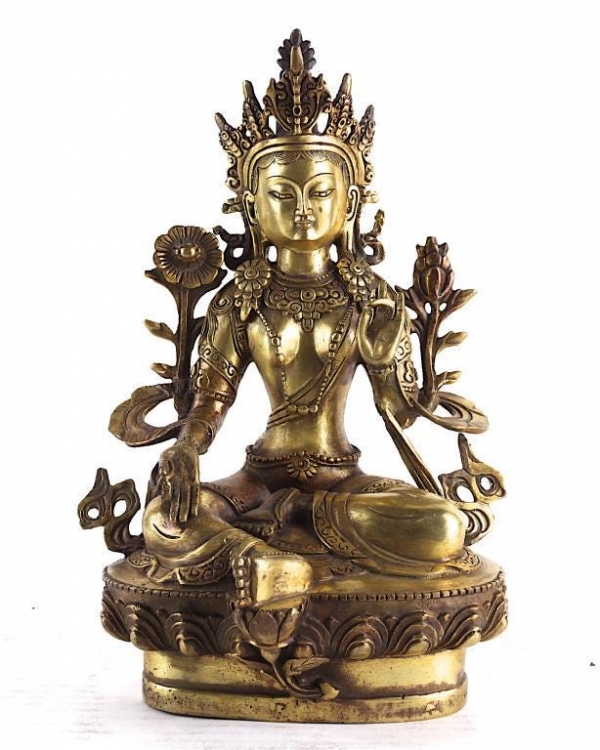 A GILT BRONZE FIGURE OF GREEN TARA