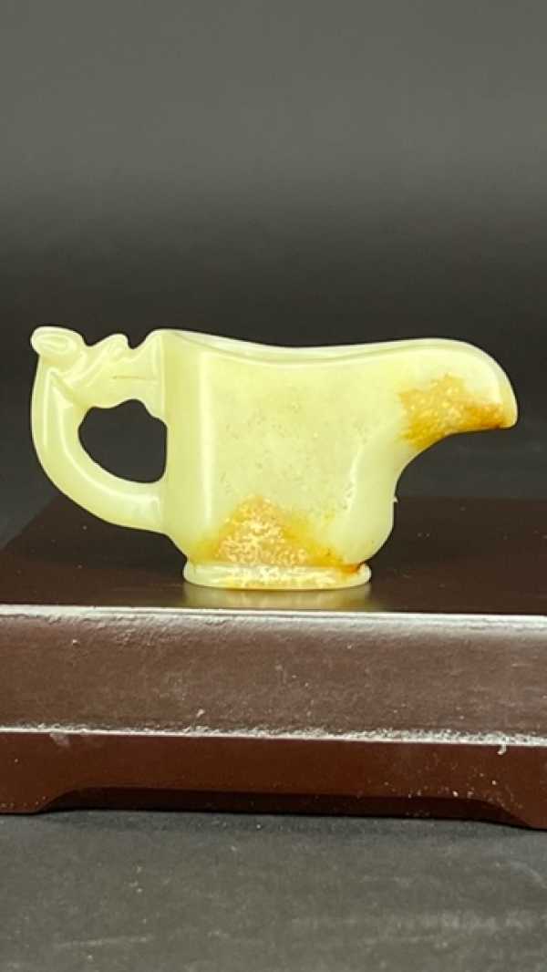 A MINIATURE FIGURE OF A JADEITE WINE VESSEL