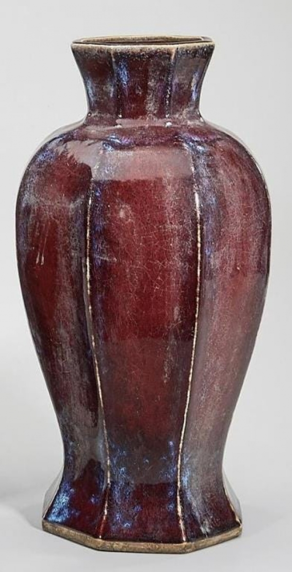 ANTIQUE 19TH C. SANG DE BOEUF OCTAGONAL VASE