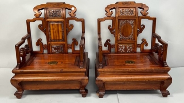 ANTIQUE PAIR OF CHINESE WOODEN CHAIRS WITH LOCKS