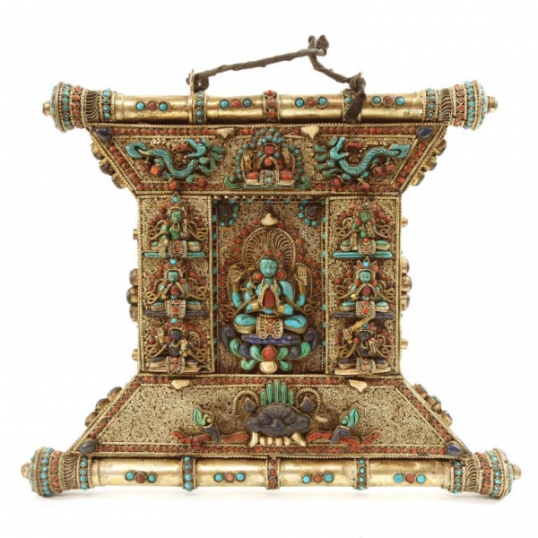 ANTIQUE TIBETAN GILT BRONZE HANGING FRAME