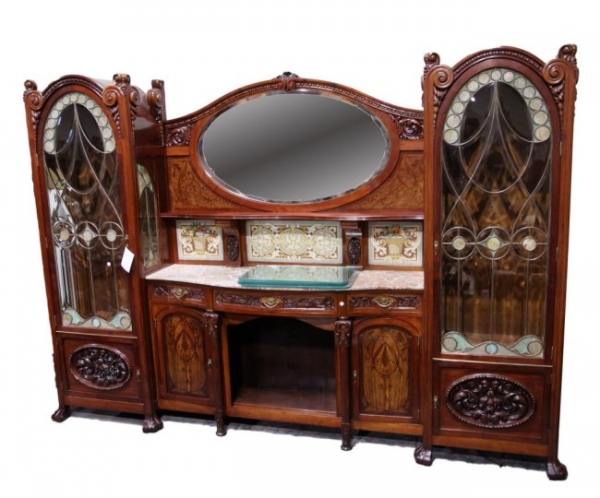 ART NOUVEAU CARVED MAHOGANY SIDEBOARD