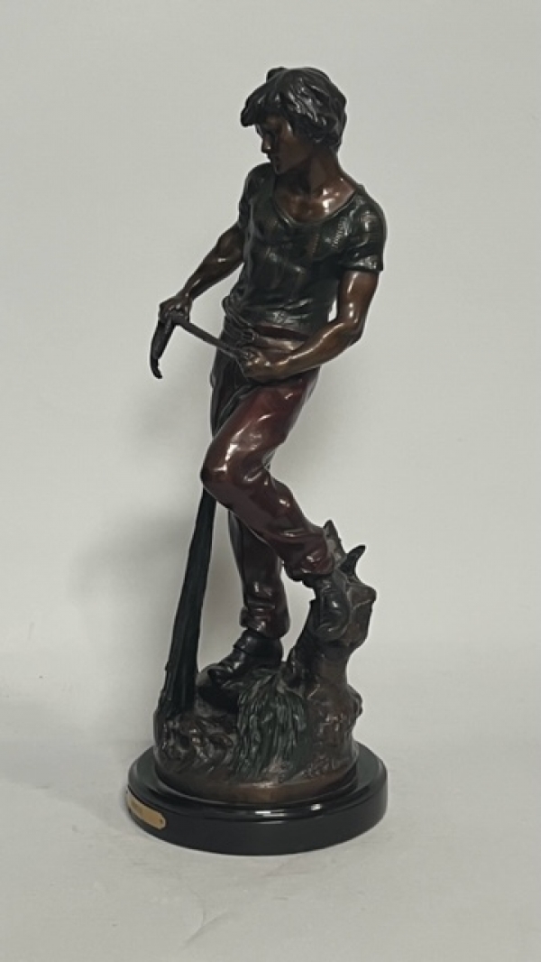BRONZE FIGURAL STATUE OF YOUNG MAN