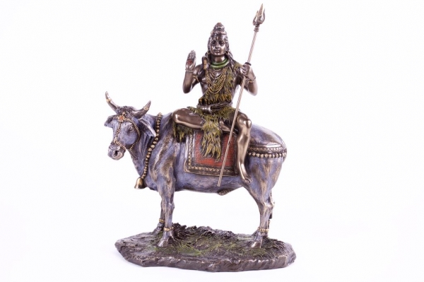 CARVED BRONZE STATUE OF SHIVA RIDING ON A BULL