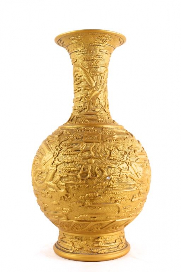 CHINESE CARVED BURNT GOLD GROUND BOTTLE VASE