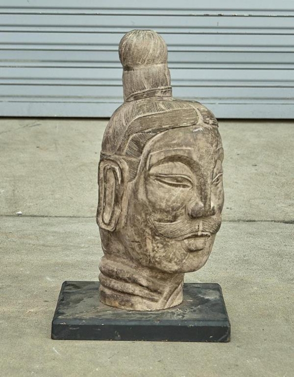 90208 CHINESE CARVED STONE HEAD OF A SCHOLAR