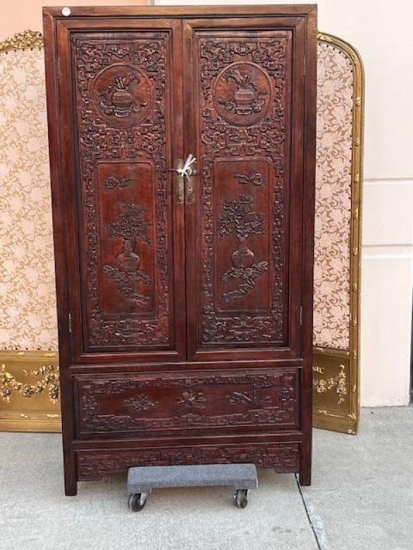 Chinese Carved Wood Wardrobe Cabinet