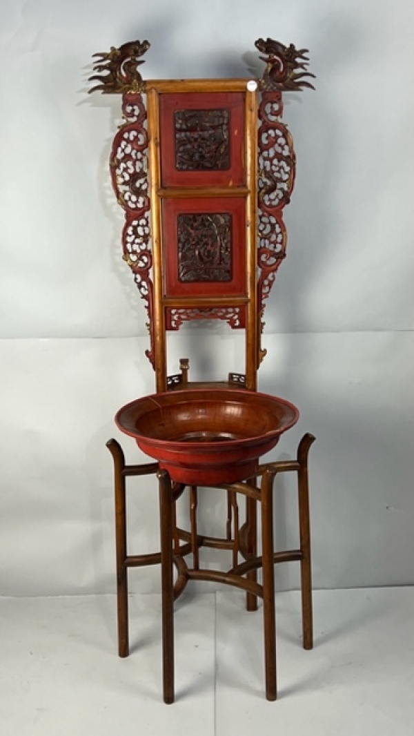 CHINESE CARVED WOODEN WASH BASIN WITH STAND