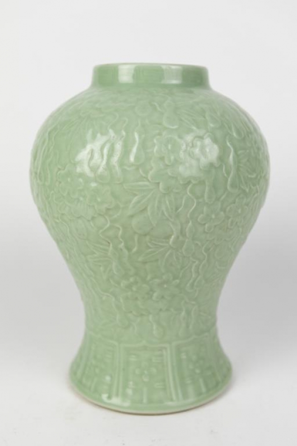 CHINESE CELADON VASE WITH FLOWERS