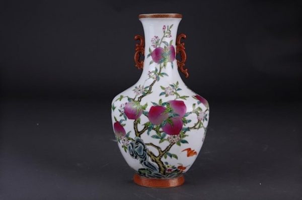CHINESE FAMILLE ROSE PEACH VASE