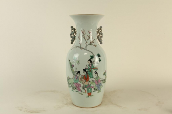 CHINESE FAMILLE VERTE ROULEAU VASE
