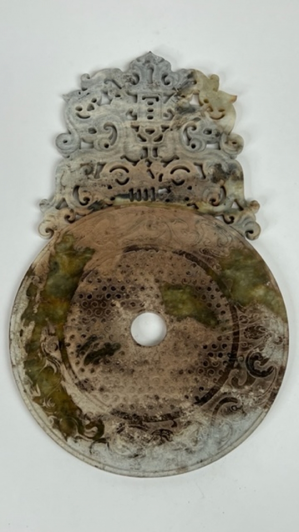 CHINESE HAND CARVED JADE OPENWORK BI