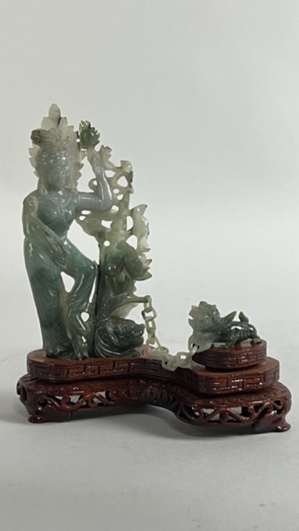 CHINESE JADE FIGURAL STATUE, OF STANDING GUANYIN