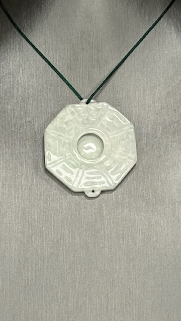 CHINESE OCTAGONAL LIGHT GREEN JADE PENDANT