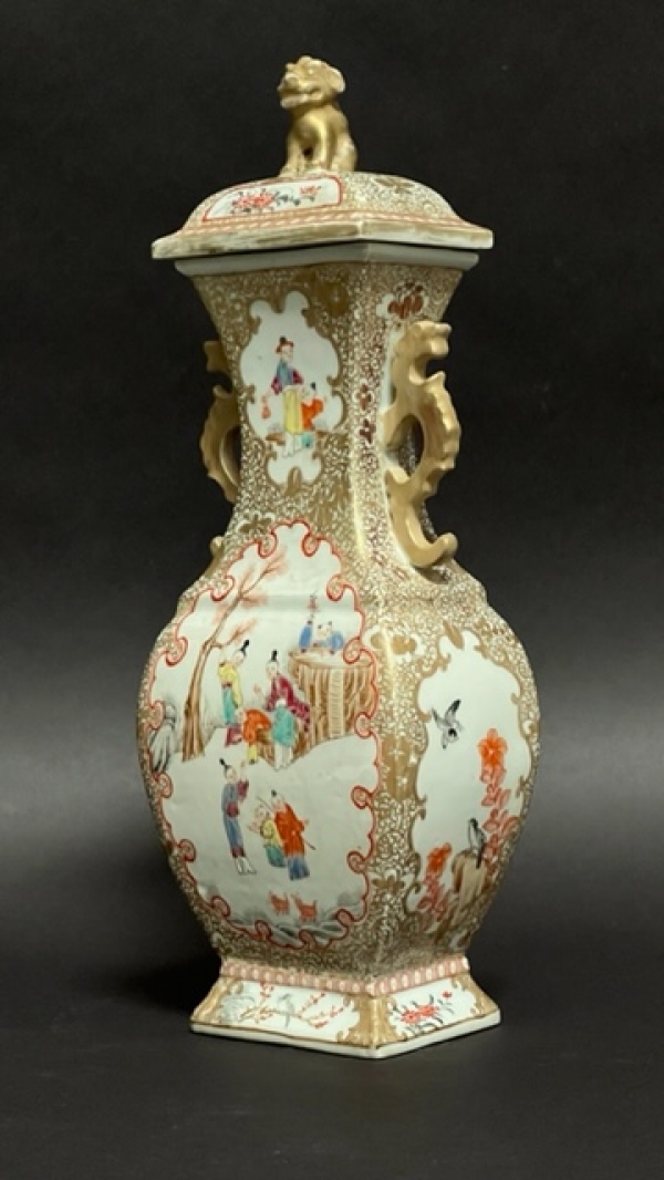 CHINESE RECTANGULAR GILT LIDDED BOTTLE VASE