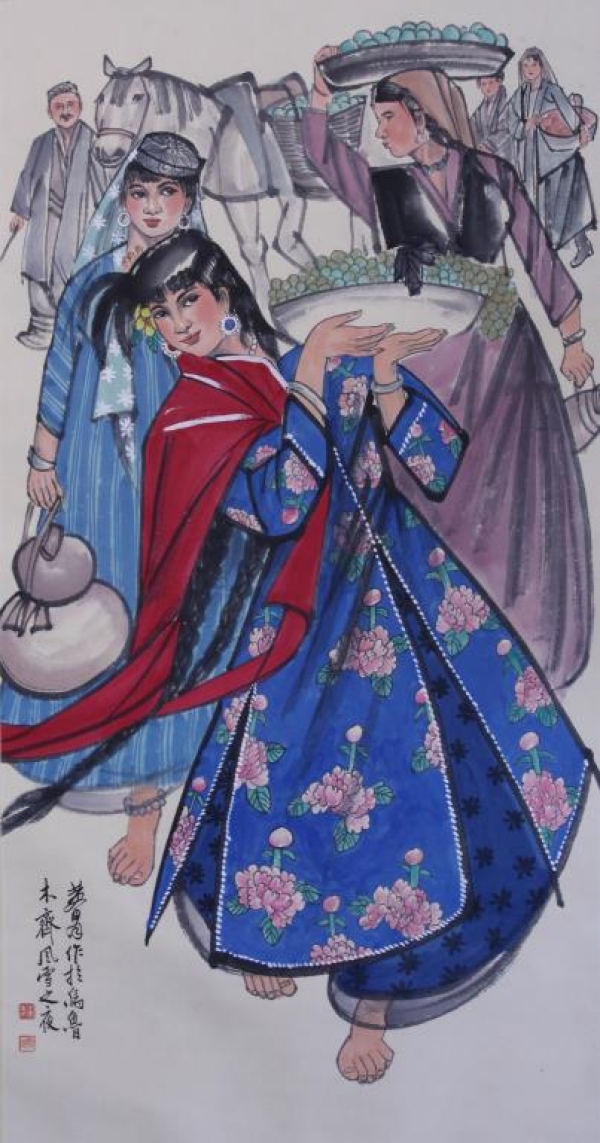 CHINESE SCROLL PAINTING OF UYGHUR GIRLS