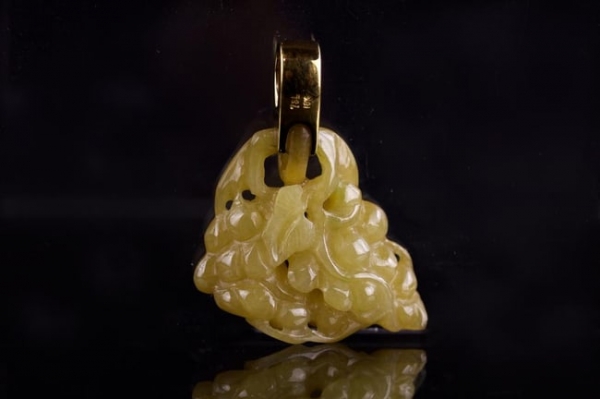 CHINESE YELLOW JADE PENDANT WITH 18K GOLD
