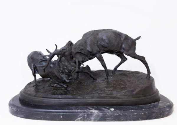 EARLY 20TH CENTURY STATUE OF TWO MALE DEER
