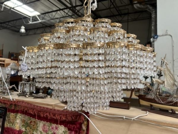 ELEGANT GILT BRASS & CUT CRYSTAL TIERED CHANDELIER