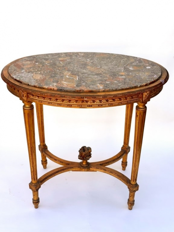 EUROPEAN OVAL GILTWOOD TABLE WITH MARBLE TOP