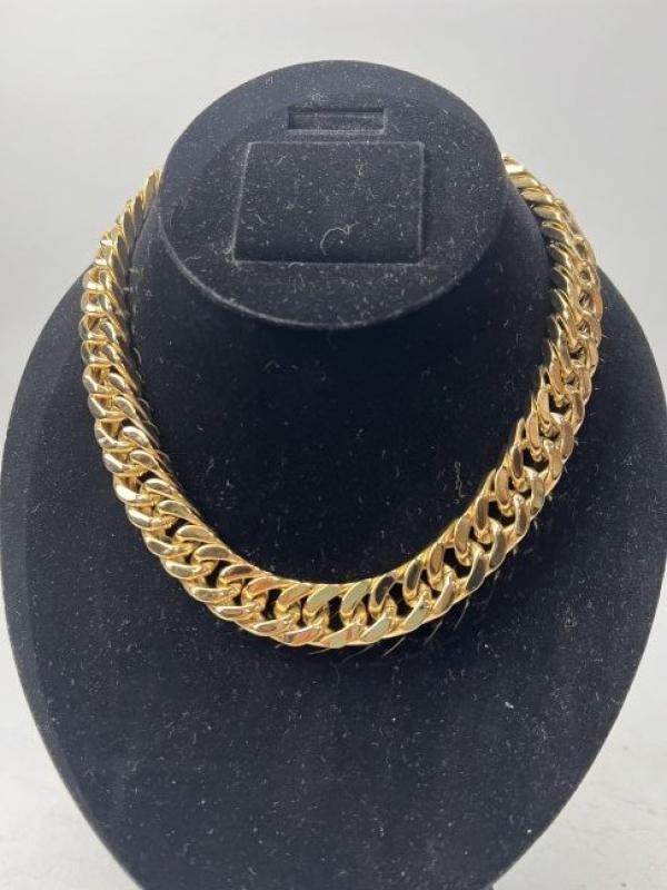 FLAT YELLOW GOLD-PLATED DOUBLE-CHAIN COLLAR NECKLACE
