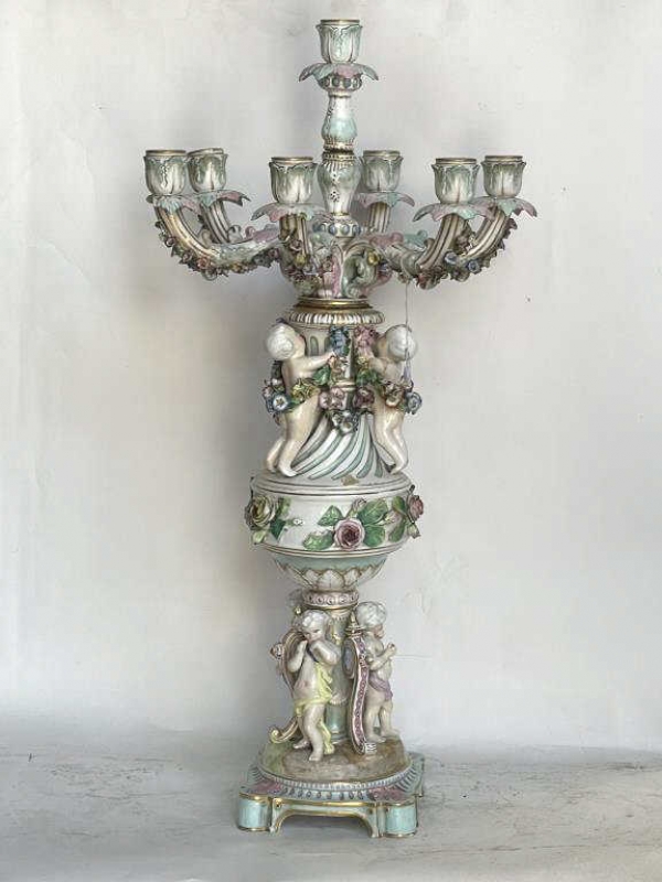 FLOWER-ENCRUSTED MEISSEN SEVEN-LIGHT CANDELABRA