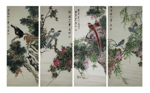 FOUR CHINESE BIRD AND FLOWER SCROLLS ON PAPER
