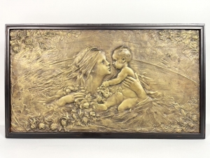 FRAMED CAST BRONZE PLAQUE OF A MOTHER AND CHILD