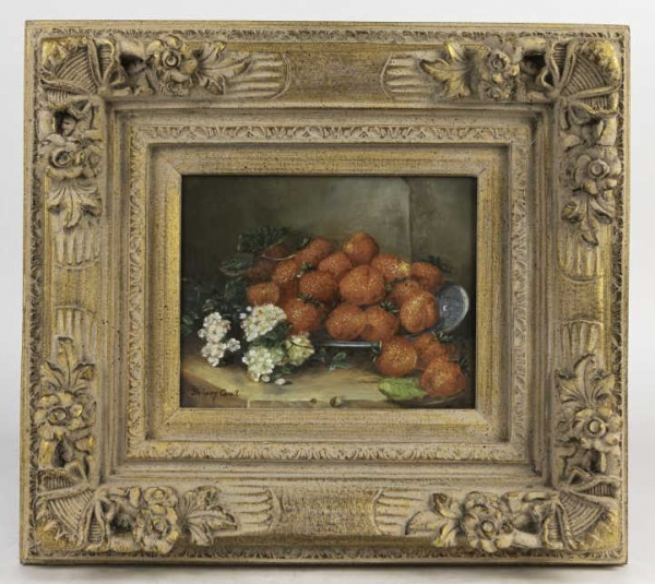 FRAMED OIL ON BOARD PAINTING OF STRAWBERRIES