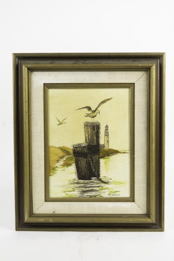 FRAMED OIL ON CANVAS PAINTING OF A COASTAL SCENE