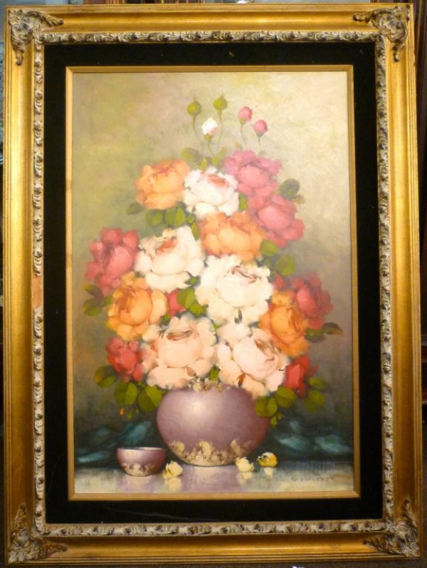 FRAMED OIL ON CANVAS PAINTING OF FLOWERS