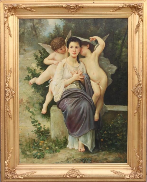 FRAMED OIL PAINTING, OF A WOMAN WITH TWO CHERUBS
