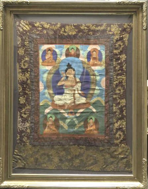 FRAMED TIBETAN THANGKA, OF BUDDHIST DEITY SCENE