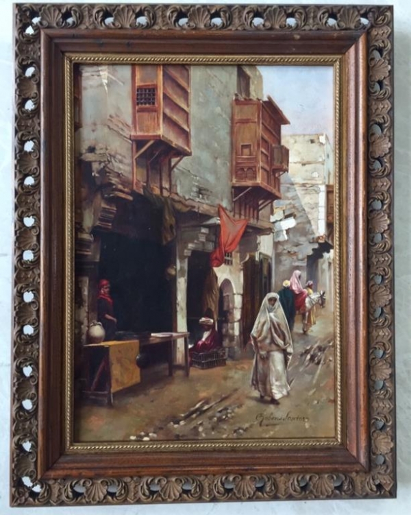 GILT WOOD FRAMED OIL ON CANVAS PAINTING OF A STREET SCENE