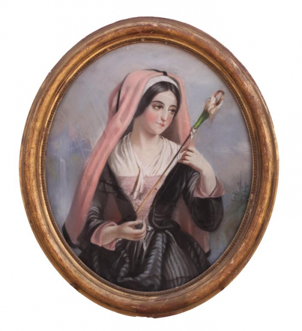 GILTWOOD FRAMED OIL ON CANVAS PAINTING OF A LADY