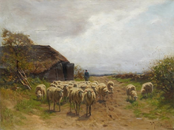 HERMAN JOHANNES VAN DER WEELE, DUTCH, 1852-1930, FLOCK OF SHEEP IN A RURAL AREA