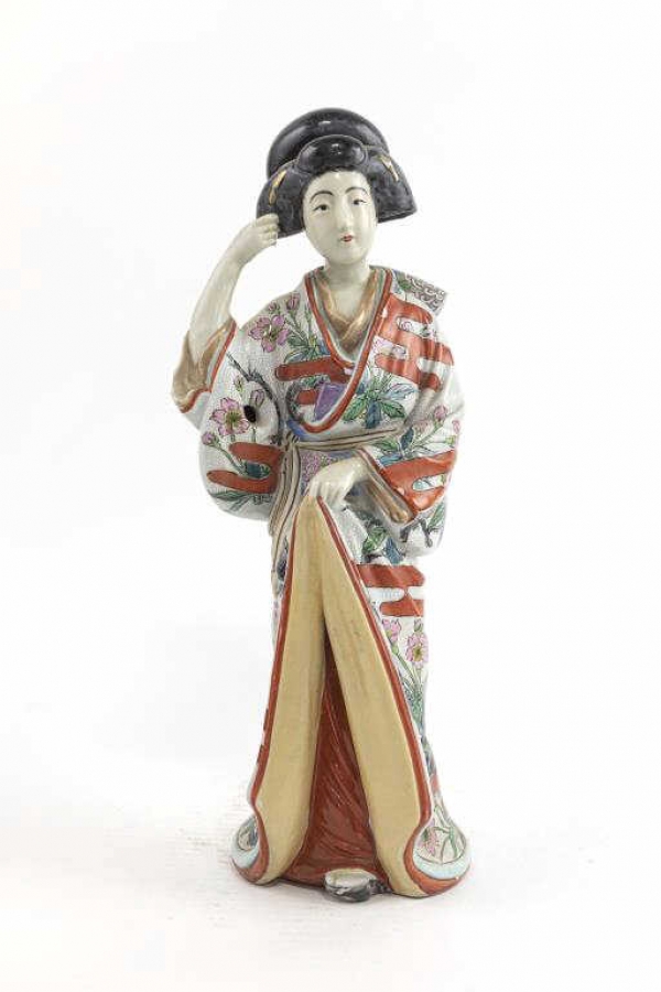 JAPANESE MEIJI PERIOD ENAMELED FIGURE OF GEISHA