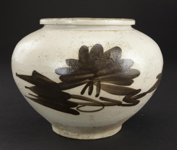 With an abstracted floral design to one side and inscription to the other side near the top. H: 6 in.