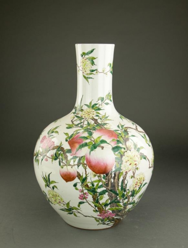 LARGE ANTIQUE CHINESE 'NINE PEACHES' GLOBULAR VASE