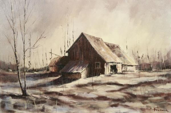 OIL PAINTING OF AN ABANDONED BARN BY S. FOURNIER