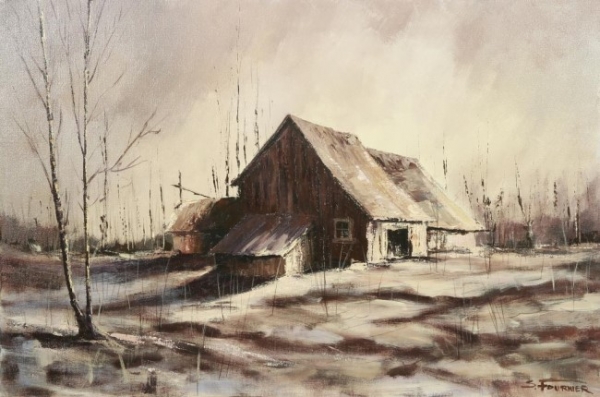 OIL PAINTING OF AN ABANDONED BARN BY S. FOURNIER