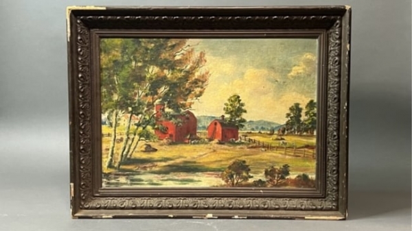 Oil Painting on Canvas, of a Farm Scene