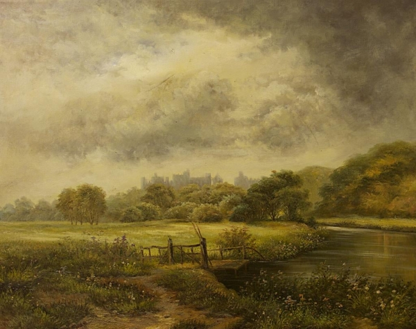 OIL PAINTING ON CANVAS, OF A VAST CITY PARK