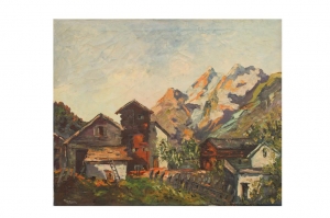 OIL PAINTING ON CANVAS OF A VILLAGE BY CHER HOEVEN